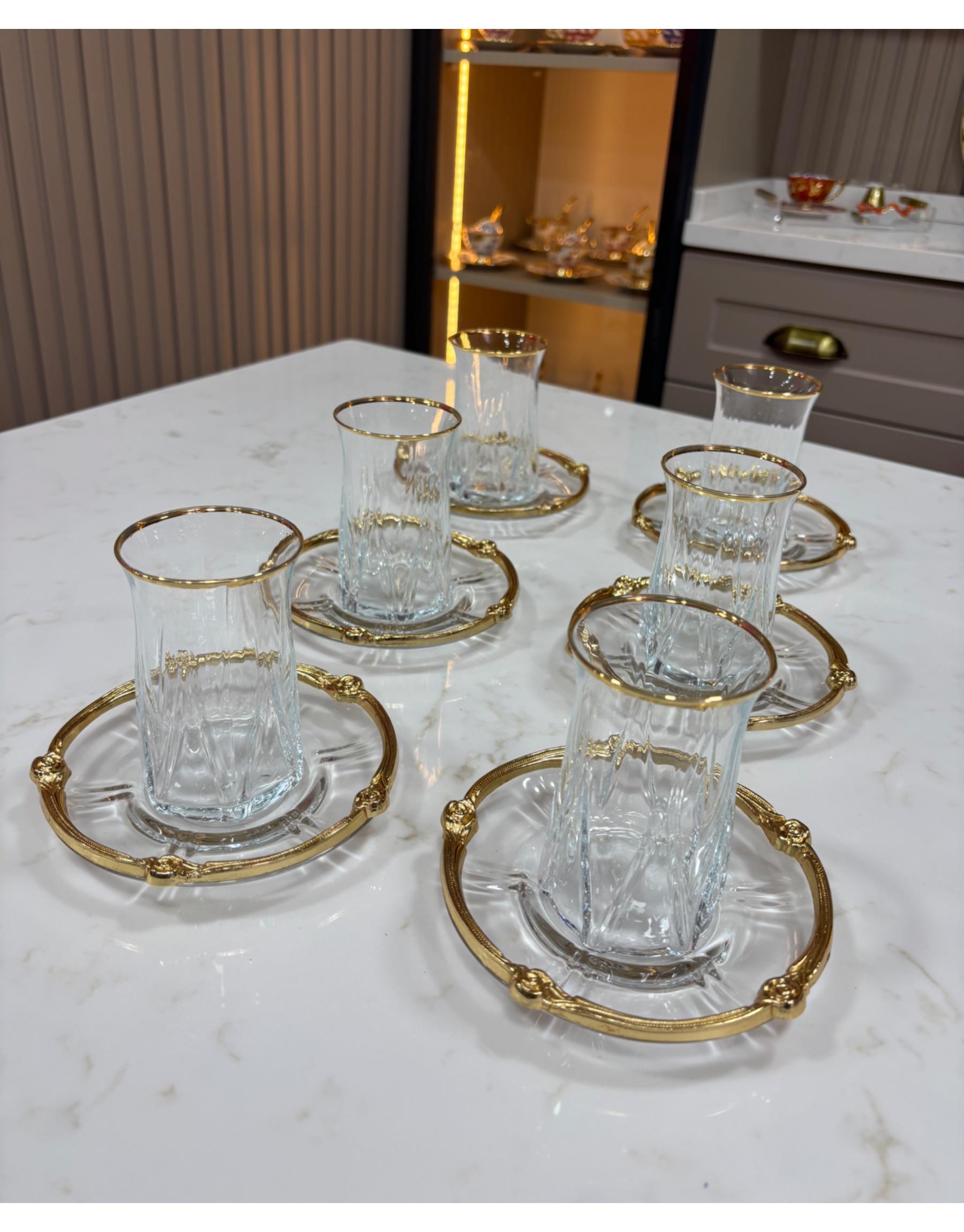 Papatya Kristal Titanyum Kaplama Çay Seti Gold