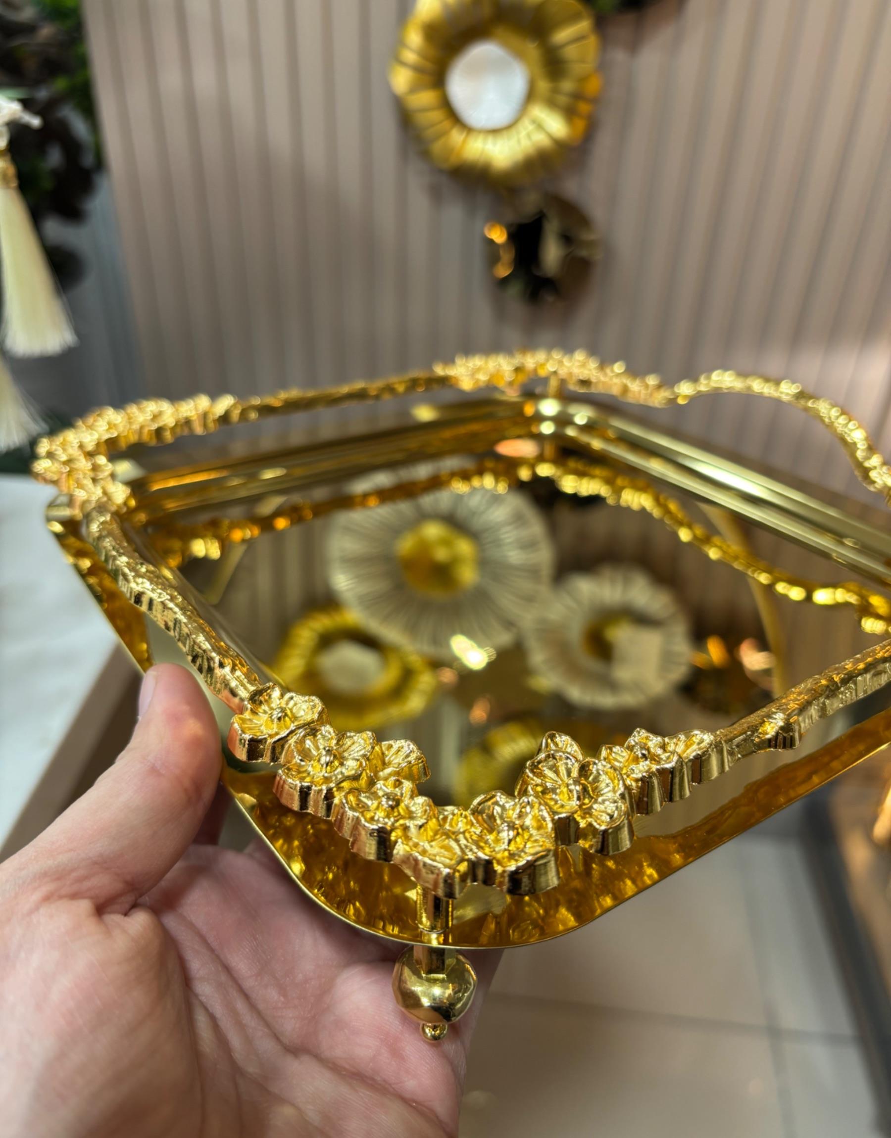 Çiçek Ayaklı Kare Tepsi 6 lı Gold