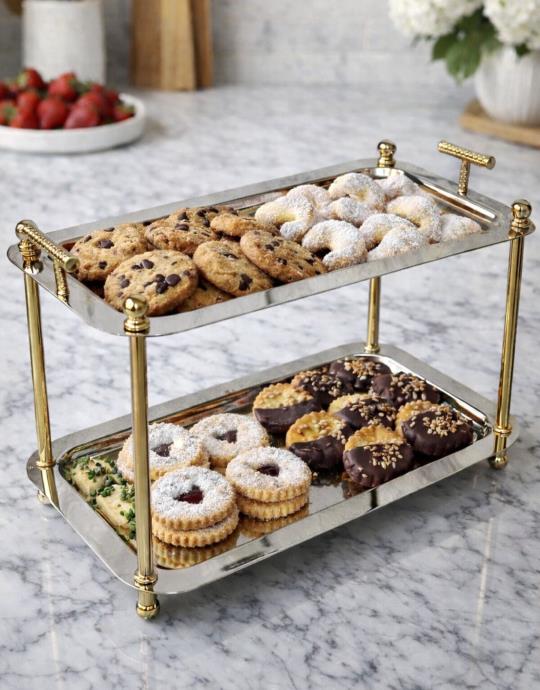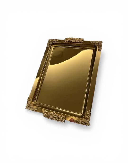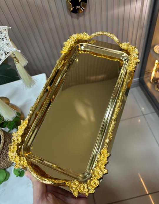 Çiçekli Ayaklı Dikdörtgen Tepsi 6 lı Gold