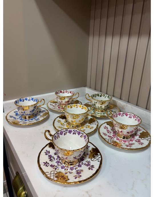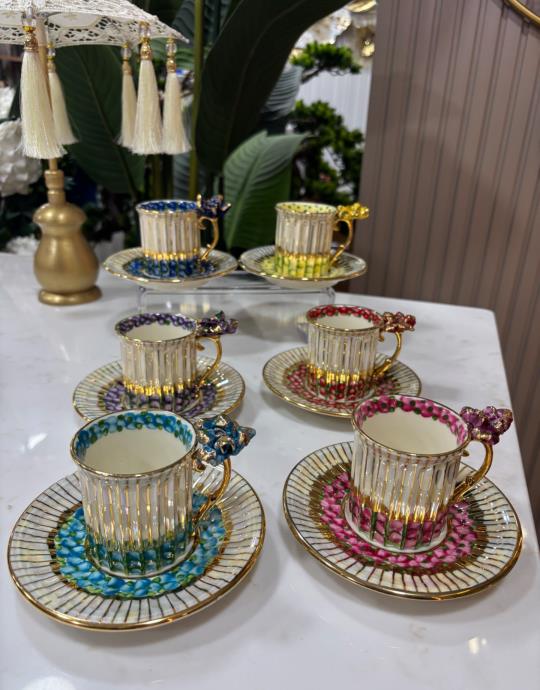 El Boyması Bahar Dalı Model 6 Lı Fincan