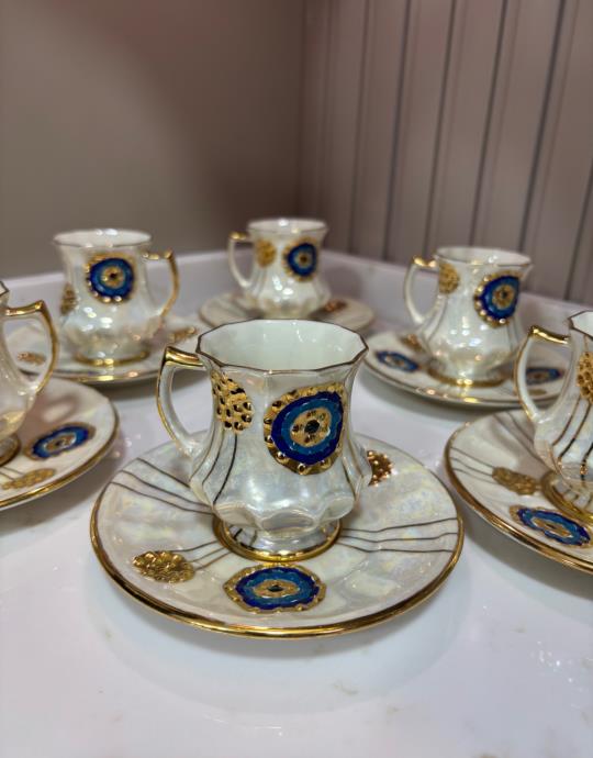El Boyaması Fincan Seti Papatya Model