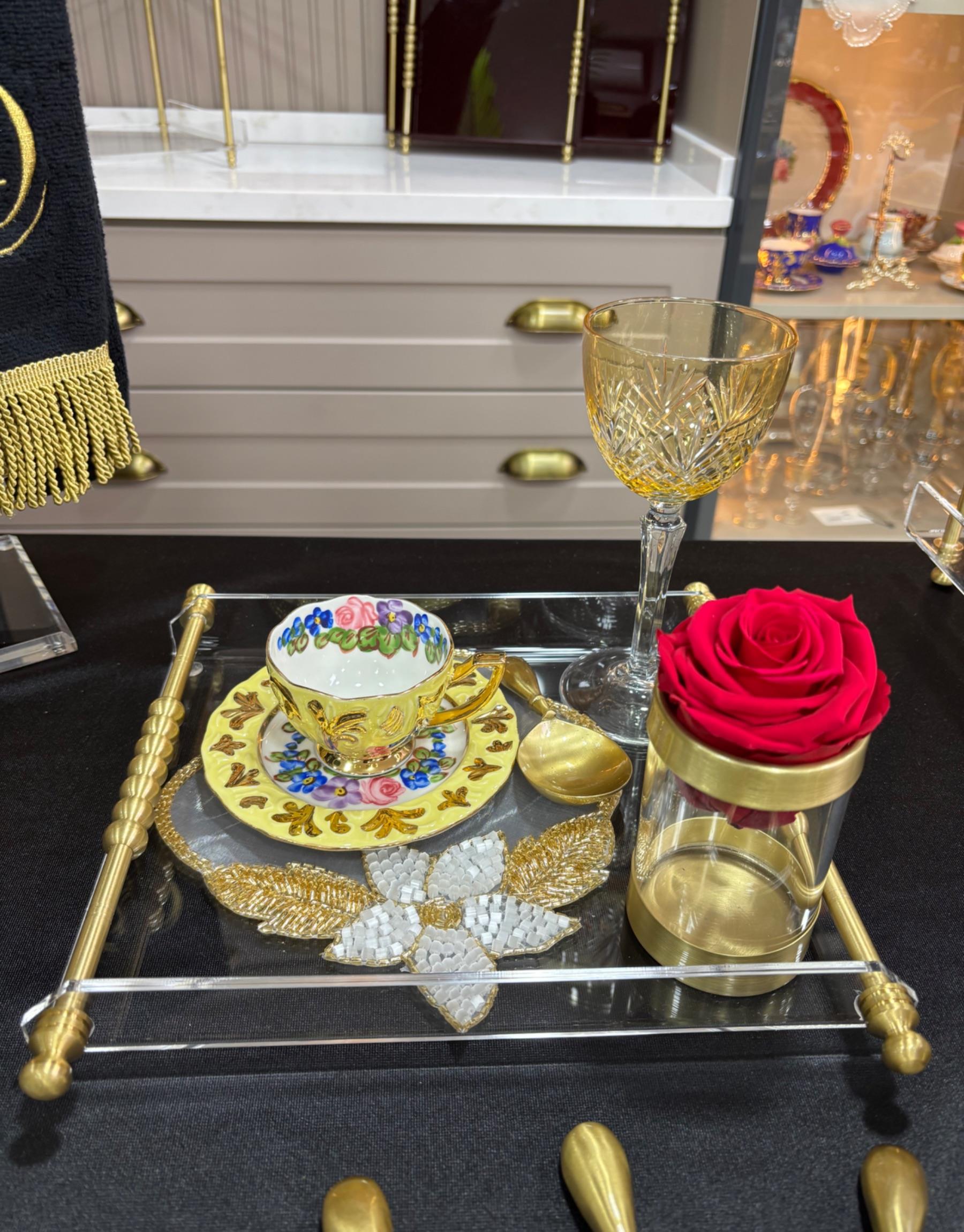 Pleksi Pirinç Bilye Kulp Tek Kişilik Tepsi