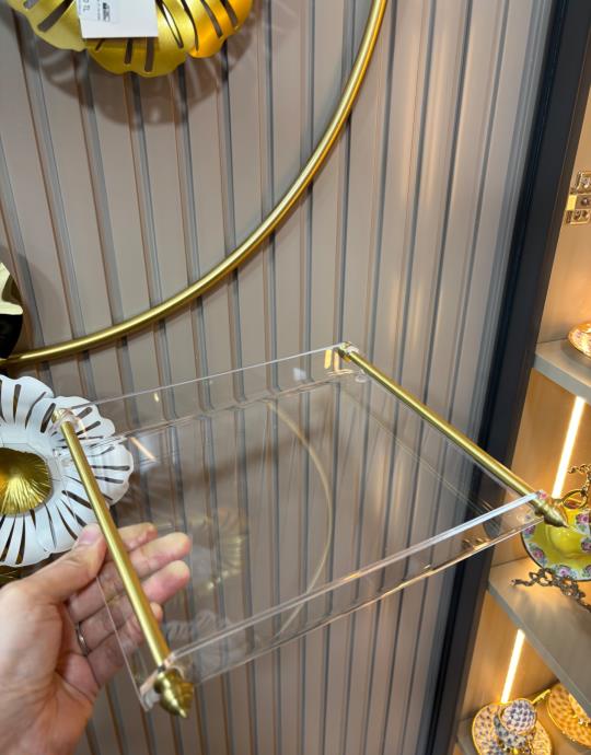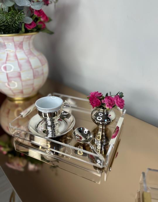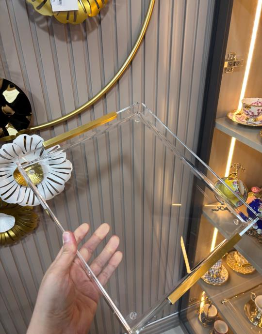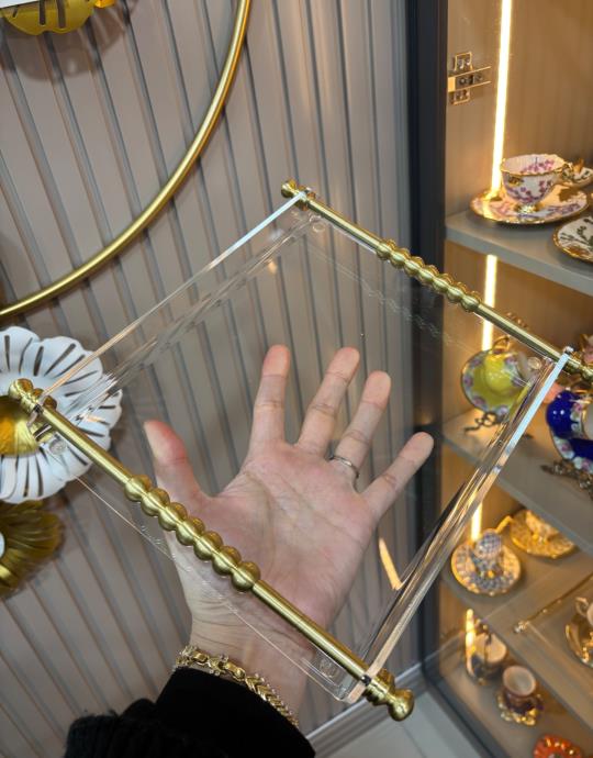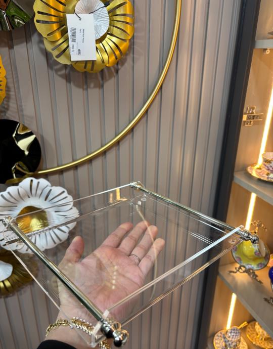 Pleksi Pirinç Bilye Kulp Tek Kişilik Tepsi Şeffaf