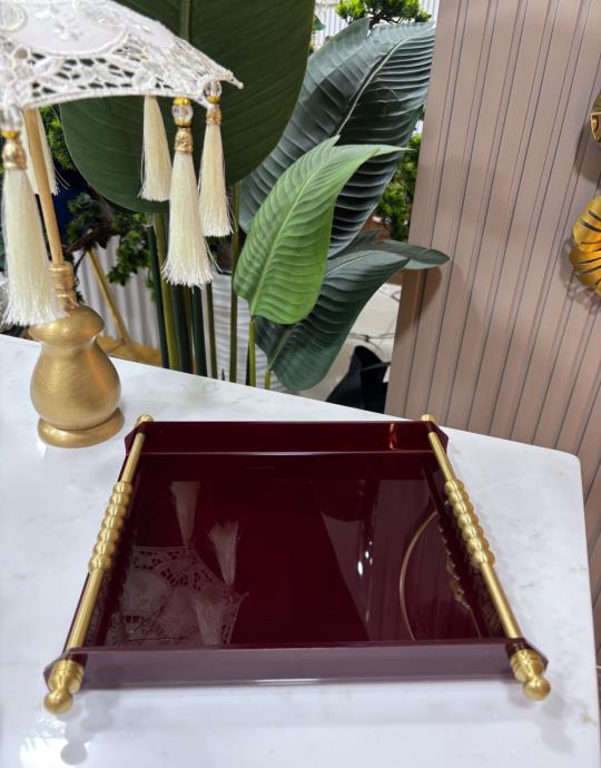 Pleksi Pirinç Bilye Kulp Tek Kişilik Tepsi Bordo