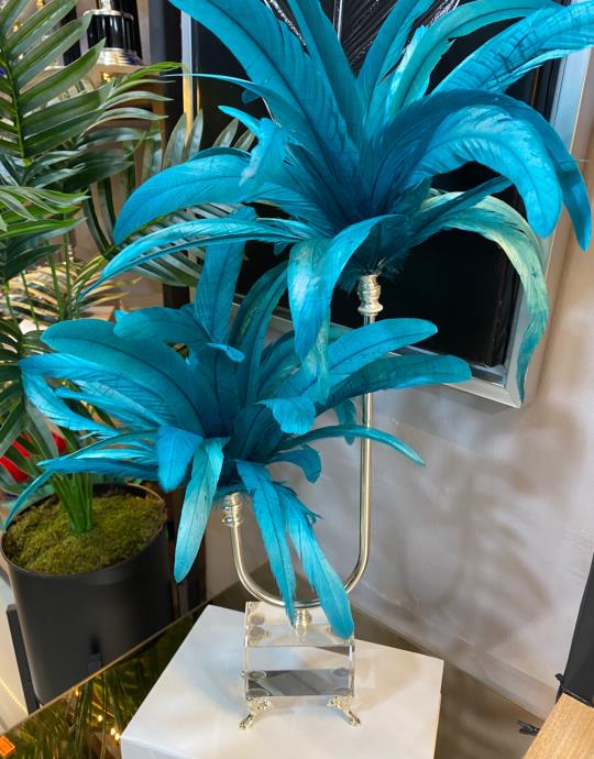 2 Katlı Kristal Ayak Gümüş Doğal Tüy Mavi