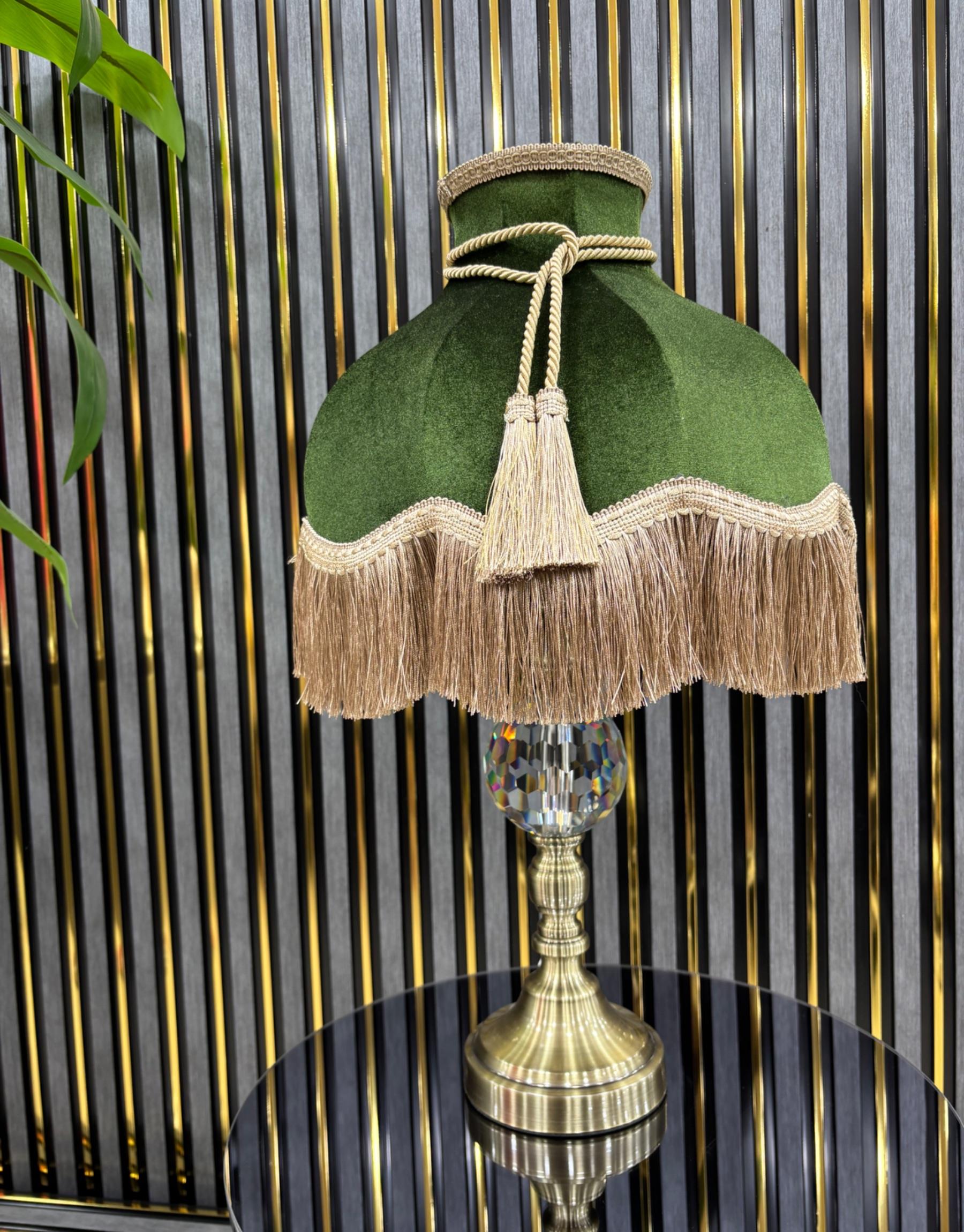 Kadife Abajur Vintage Model Yeşil