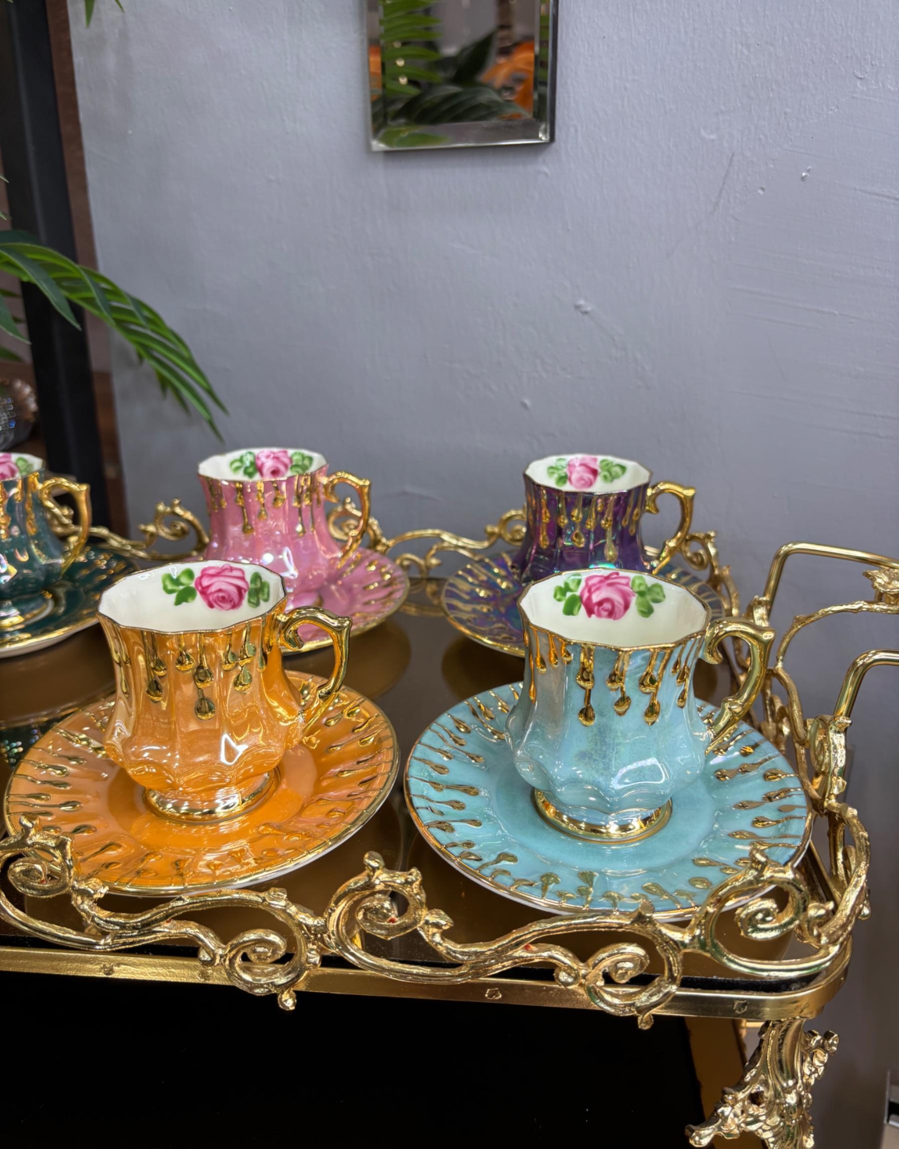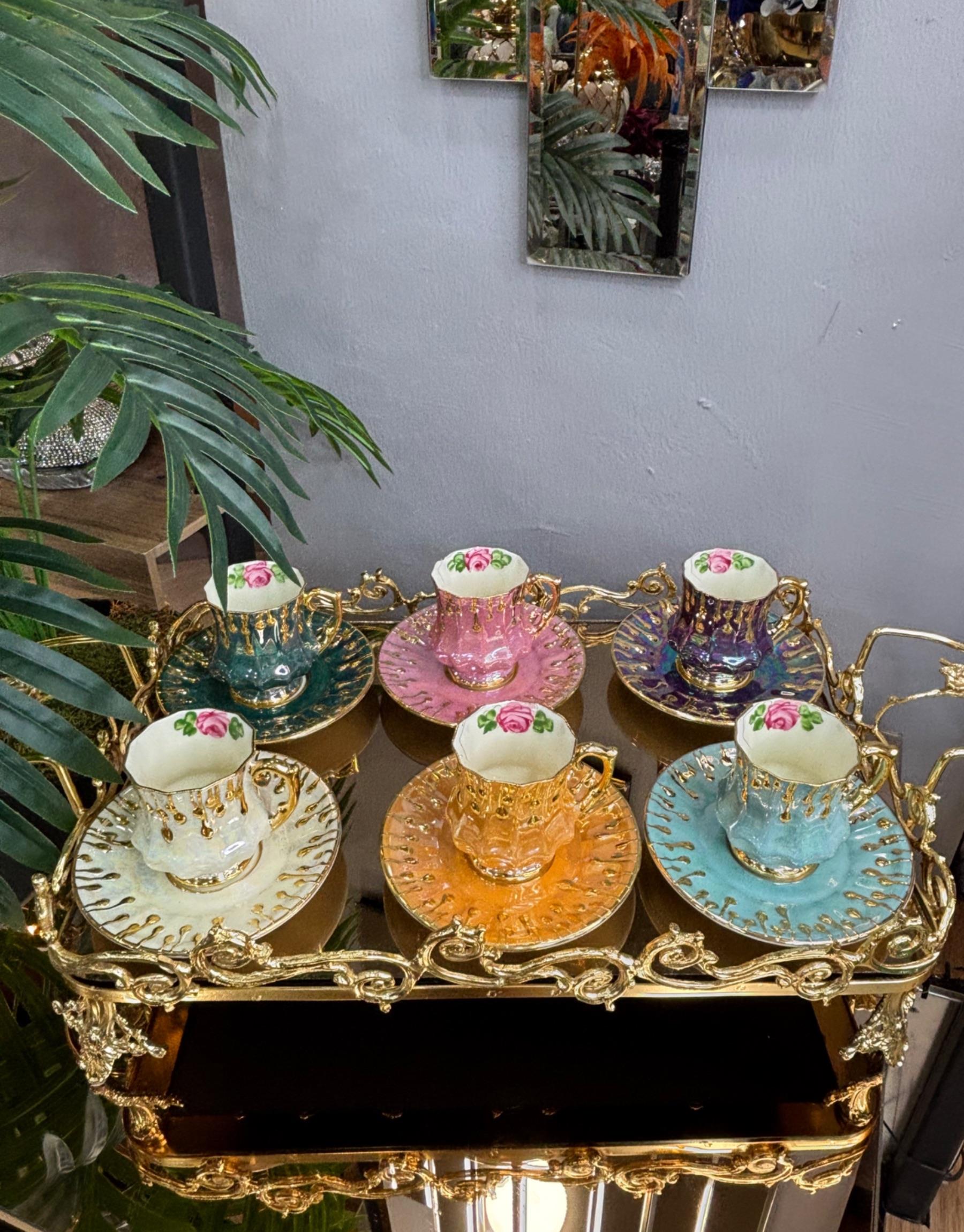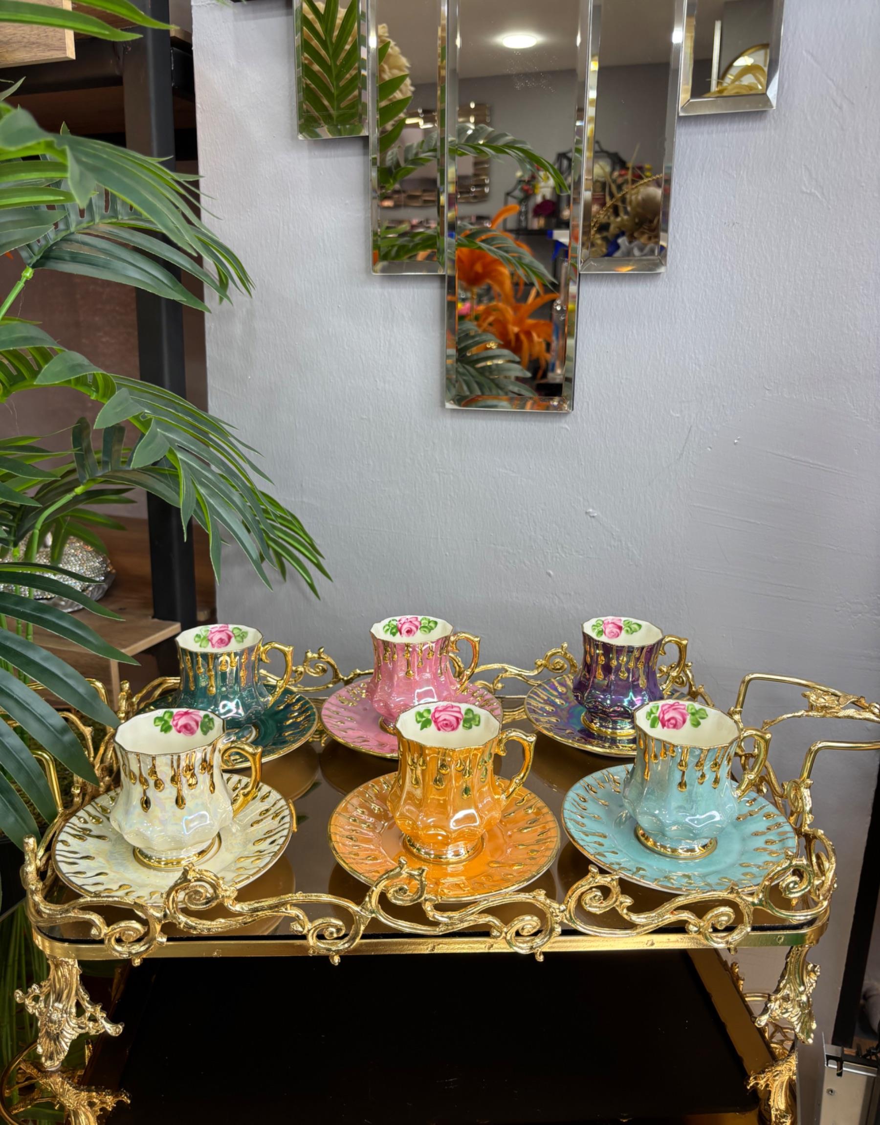 El boyaması 12 Parça Fincan Takımı ve Lokumluk Seti